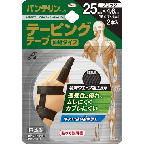 バンテリンコーワ テーピングテープ 伸縮タイプ 25mm*4.6m ブラック(2本入)[サポーター その他]