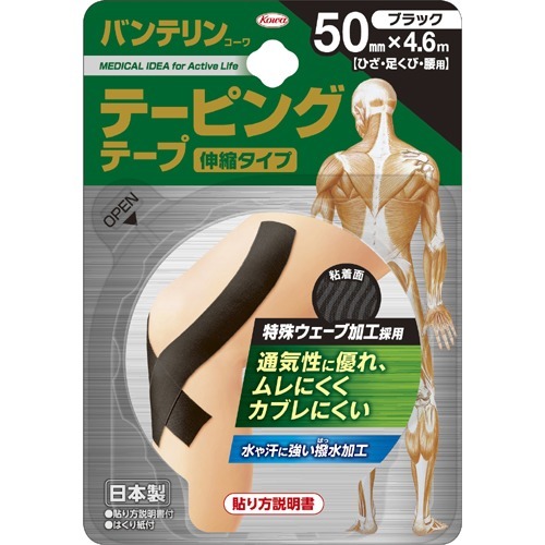 バンテリンコーワ テーピングテープ 伸縮タイプ 50mm*4.6m ブラック(1本入)[サポーター その他]