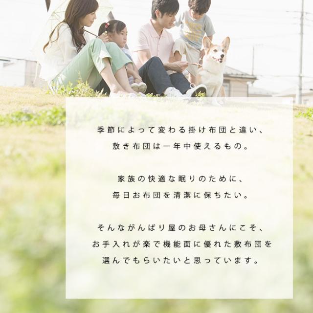 - 日本製の敷布団で厚みがあり、しっかりした物を探してましたので、この敷布団はぴったりでした。 大柄で体格も良い息子の為に購入し、寝心地も、体をしっかり支えてもらえ、寝返りもしやすく楽だと言ってます。