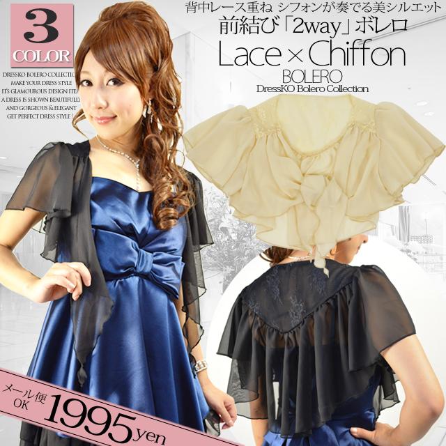 シフォンが奏でる美しいギャザーデザイン◆背中レース重ね2wayボレロ・カーディガン【半袖】