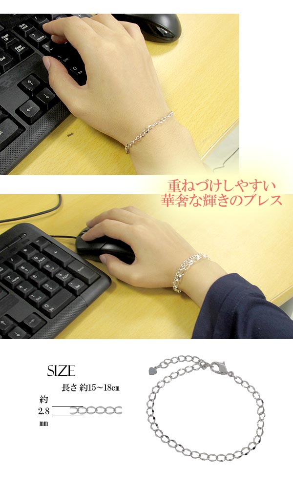 平らなチェーンの面がキラキラと輝き、アナタの腕周りを上品に演出!