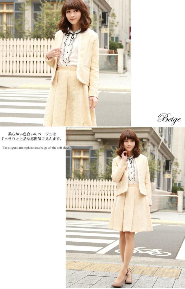 - ベージュが欲しかったんですが、売り切れで残念。私は肩幅が広いのでジャケットの肩幅はちょっとあわなかったけど生地が柔らかいのでキツくは感じませんでした。デザインはイメージ通りだったので可愛くて気に入りましたが、生地的にはこのお値段はちょっと高かったかな...という印象です。 お店からは1度も連絡なく、急ぎだったのでメールで連絡入れても返信がなかったので電話したら「本日出荷しました」と言われ、翌日届きました。結果的には間に合ったので良かったんですが、なんだかスッキリしませんでした(-ω-;)
