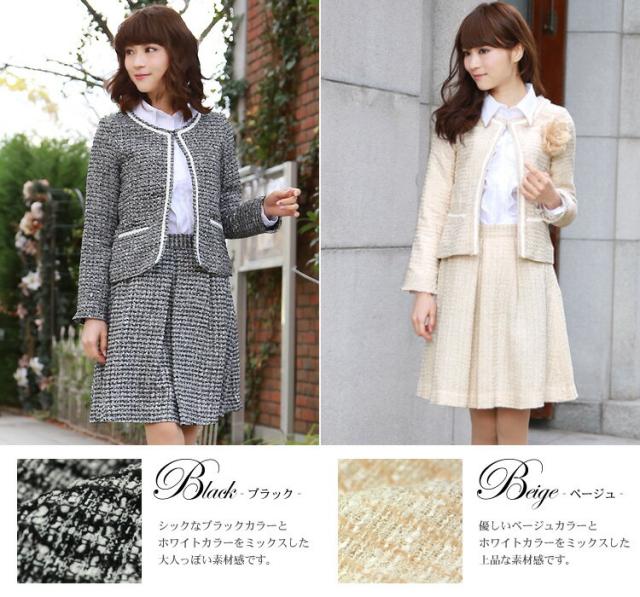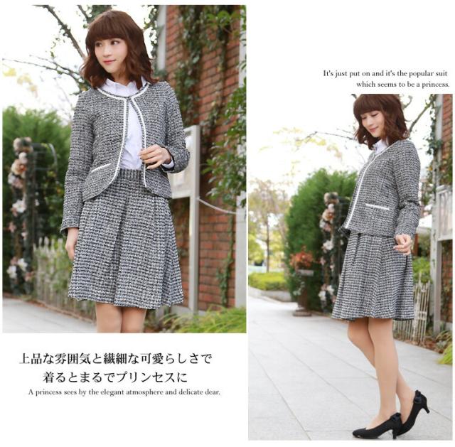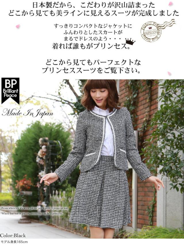 〔送料無料〕 NEW日本製ノーカラーツイードプリンセススーツ2点セット セレモニースーツ 入学式 スーツ ママ