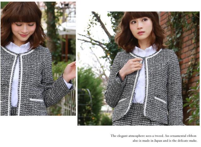 キチンと感があり自然と体に馴染むツイード素材は美しいシルエットに見える素材を厳選いたしました。