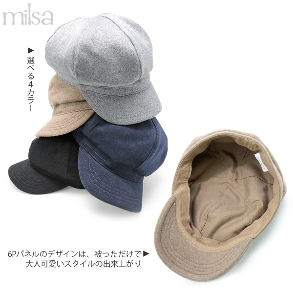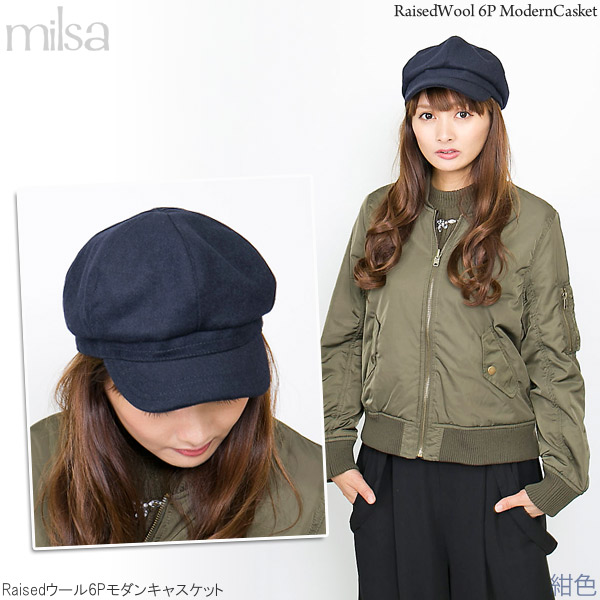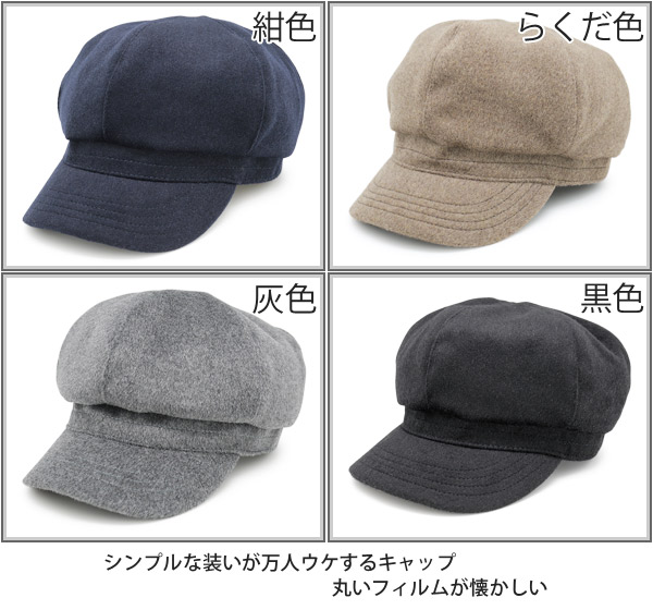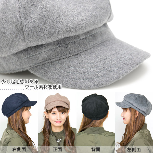 帽子 つば付き [メール便可] キャスケット レディース 秋冬 シンプル サイズ調節 / Raisedウール6Pモダンキャスケット