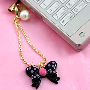 オリジナルジュエリーストラップ パール&ドットリボン ブラック SP-170-103【激安メガセール!】