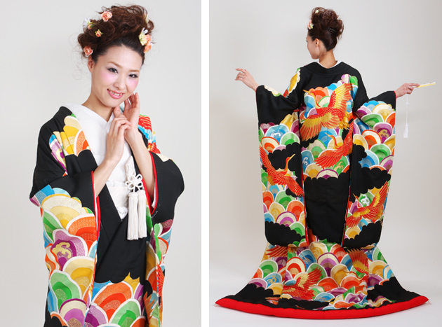 打掛 レンタル 色打掛 黒色 青海波 NT-77 送料無料