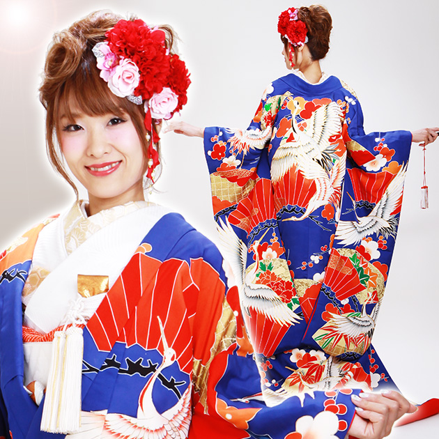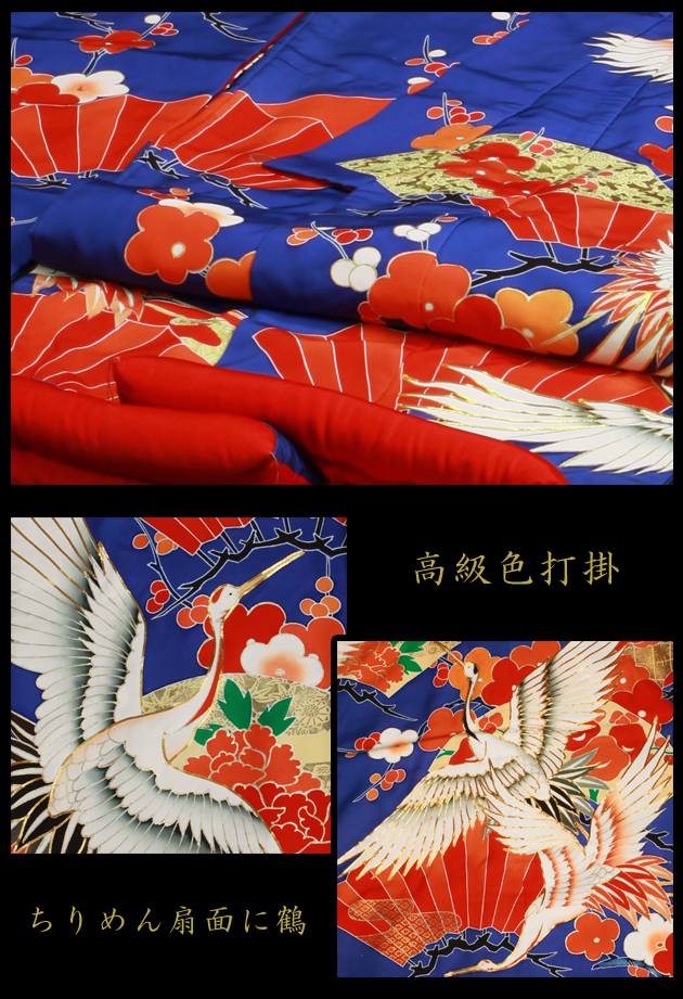 打掛 レンタル 色打掛 青色 扇面に鶴 NT-118 送料無料