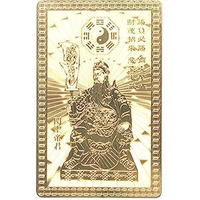 勝負必勝、商売繁盛、財運招来、悪霊退散。三国志の英雄・関帝(関羽)の雄姿をデザインした護符。武人であり、商売の神様でもある関帝の上部には「八卦」と究極の調和のシンボル「太極」を配してあります。裏面は「五岳神形符」を中心に四方に四神を彫刻。【サイズ】84x54mm【重量】約13g【素材】合金・24金仕上げ(メッキ)【付属品】携帯用高級西陣織お守り袋付き