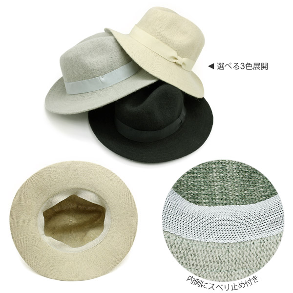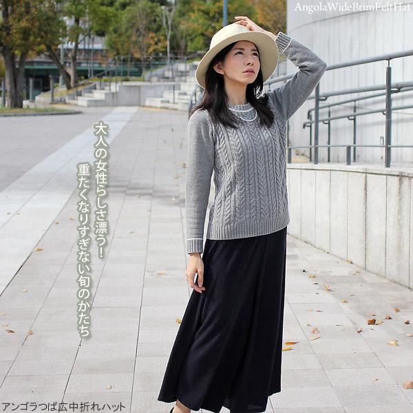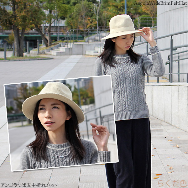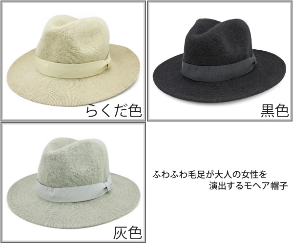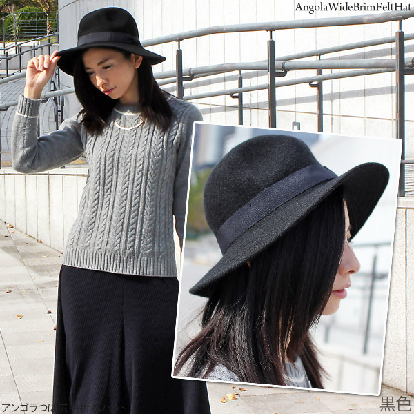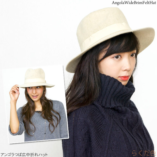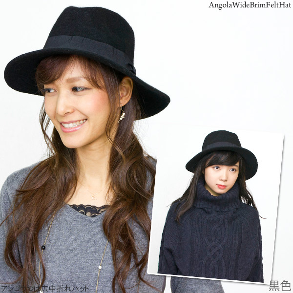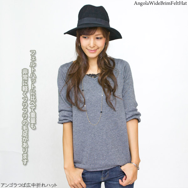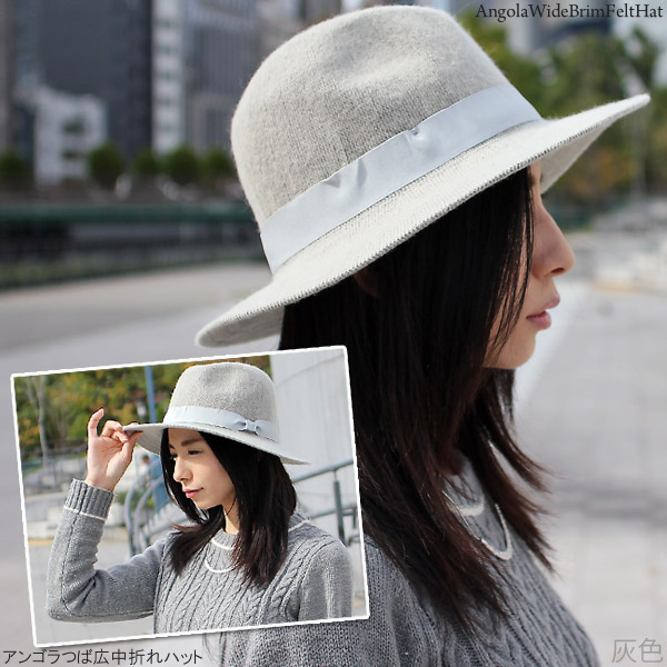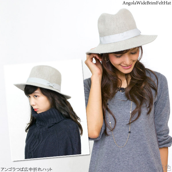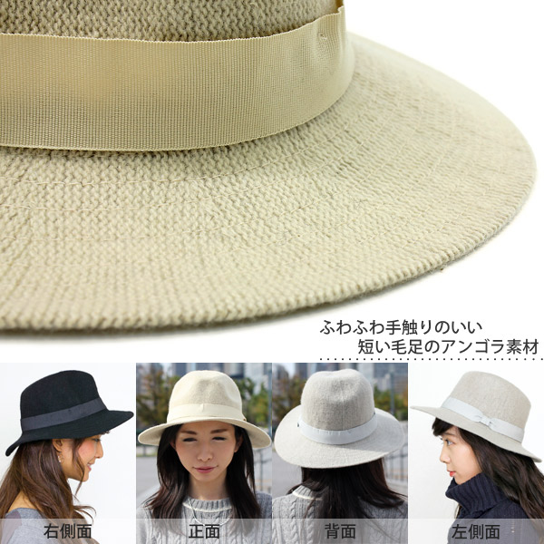 ハット アンゴラ 帽子 レディース つば広 中折れハット サイズ調整 秋冬 シンプル モヘア / アンゴラつば広中折れハット