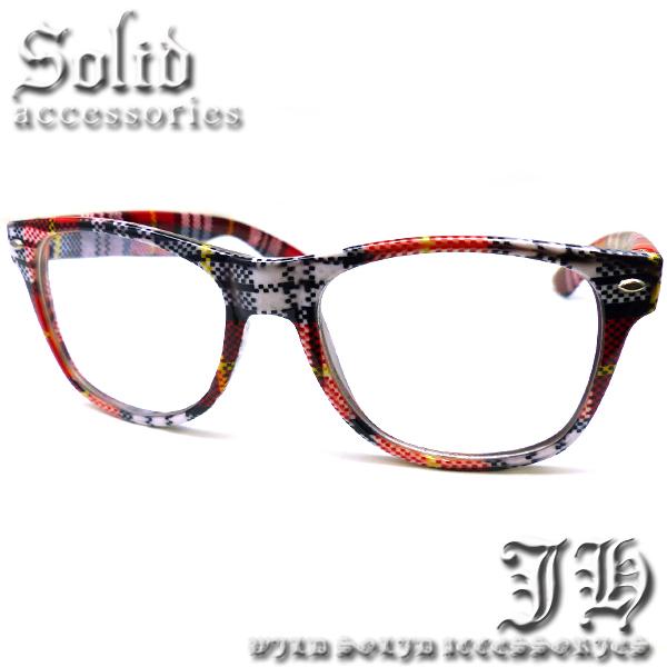 今だけ価格 ウェリントン型 伊達メガネ 人気サングラス アラレメガネ 伊達めがね タータンチェック レッド赤【 cs121 】