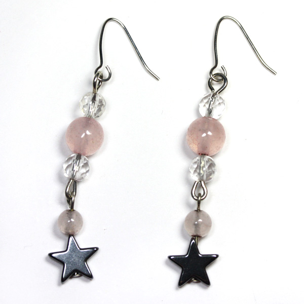 【天然石 ピアス】ヘマタイト 12星座ピアス 天秤座(ローズクォーツ) パワーストーン