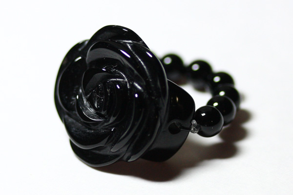 【天然石 リング】フラワーリング オニキス (ビーズタイプ) パワーストーン