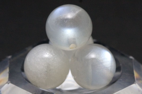 ムーンストーン:白にふわりと光が浮かぶ様が、まるで月のような石です。 女性性の象徴であり、絶対的な自然性の存在である月には、自然の精霊が従うと言われます。 ムーンストーンにも精霊の加護があるとされます。 女性の身体のバランスを整える他、超自然的な災いを跳ね除け、 繊細な見た目とはうらはらの強く清浄なパワーが持ち主を守るとされています。 体調を整えたいとき、邪気避け、迷い道からの脱出などのお守りにどうぞ。