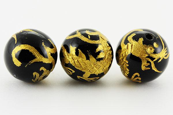 天然石 ビーズ【彫刻ビーズ】オニキス 10mm (金彫り) 青龍 パワーストーン