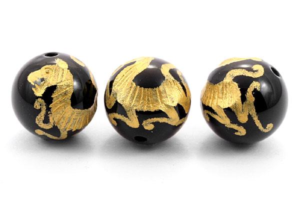 天然石 ビーズ【彫刻ビーズ】オニキス 12mm (金彫り) 白虎 パワーストーン