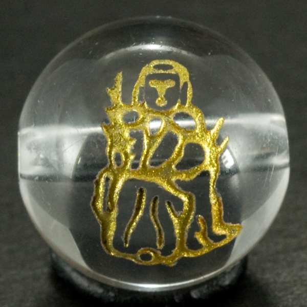 天然石 ビーズ【彫刻ビーズ】水晶 10mm 線彫り (金彫り) 七福神「寿老人」 パワーストーン
