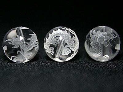 天然石 ビーズ【彫刻ビーズ】水晶 12mm (素彫り) 五爪龍 パワーストーン