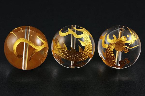 天然石 ビーズ【彫刻ビーズ】水晶 20mm (金彫り) 青龍 ※ネコポス不可※ パワーストーン