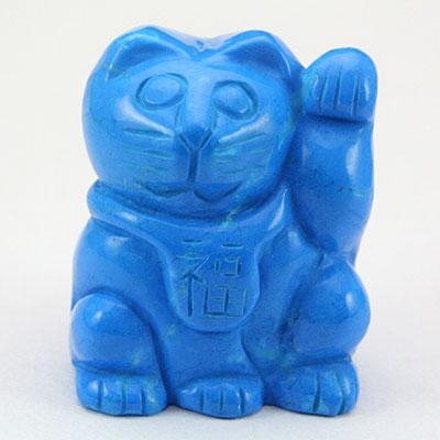 【天然石 彫刻置物】招き猫 ハウライトトルコ・福 約32x40mm ※ネコポス不可※ パワーストーン