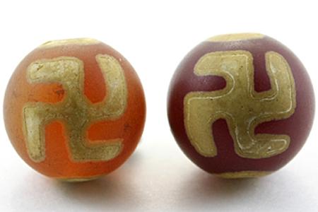 チベットに端を発する守護アイテムです。英語圏では「dZi beads(ジービーズ)」と呼ばれます。瑪瑙で作られ、特殊な加工により宗教的図案を焼き付けています。災い、疫病に苦しむ人々を哀れんだ密教の女神 が、天より降ろした法珠が天珠であるとされます。神の護りは今も昔も変わらず、現在でもオリエンタルムードたっぷりの守護アイテムとして愛されています。