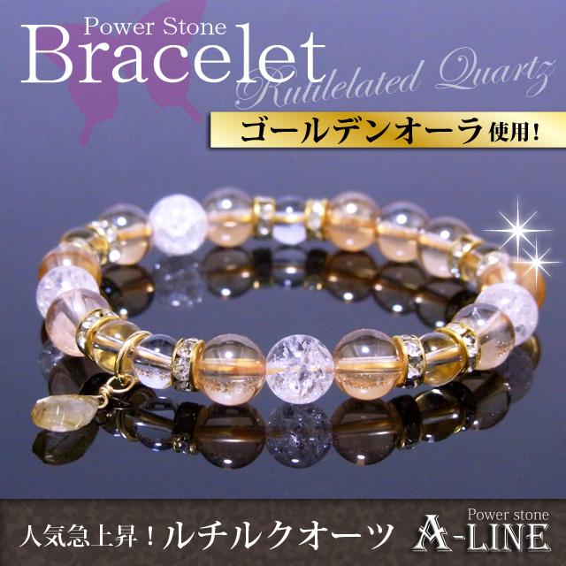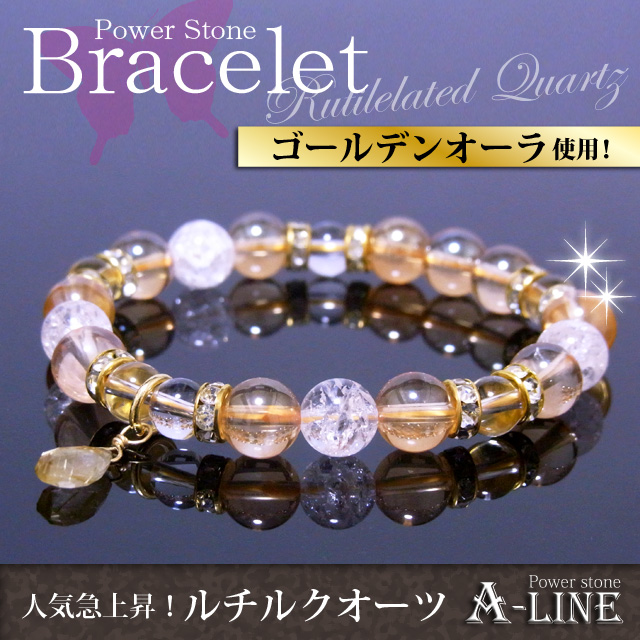パワーストーン ブレスレット ブレストップに金運石 ルチルクォーツ ゴールデンオーラ使用 PW-2442