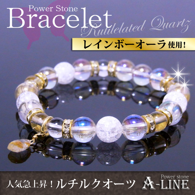 送料無料 パワーストーン ブレスレットブレストップに金運石 ルチルクォーツ レインボーオーラクリスタル PW-2443