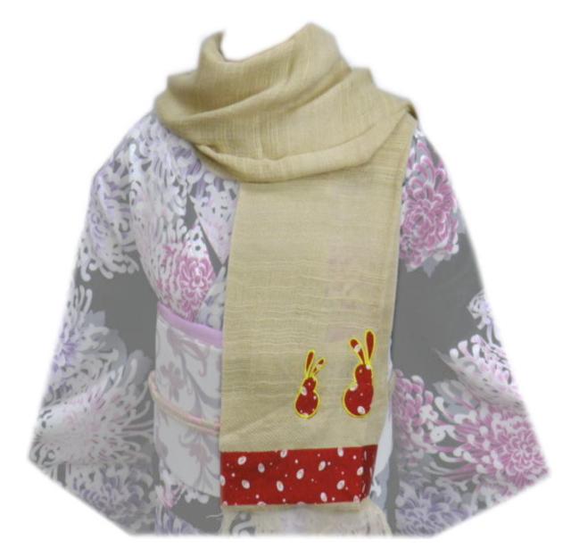 コットン マフラー 和柄 パッチワーク ベージュ地うさぎ 着物 洋装 女性用 レディース ウサギ 兎