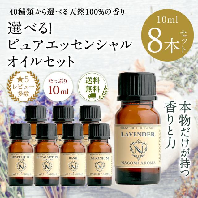 | アロマ エッセンシャルオイル 選べる6本セット 各5ml 1,100円 | アロマ エッセンシャルオイル 選べる8本セット 各10ml 2,960円 |