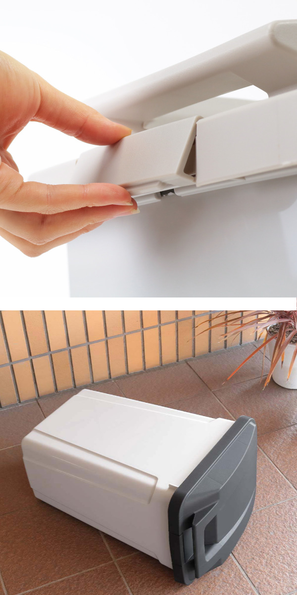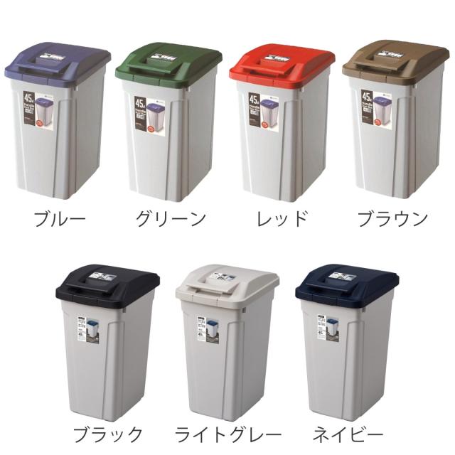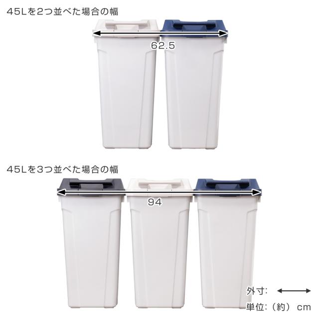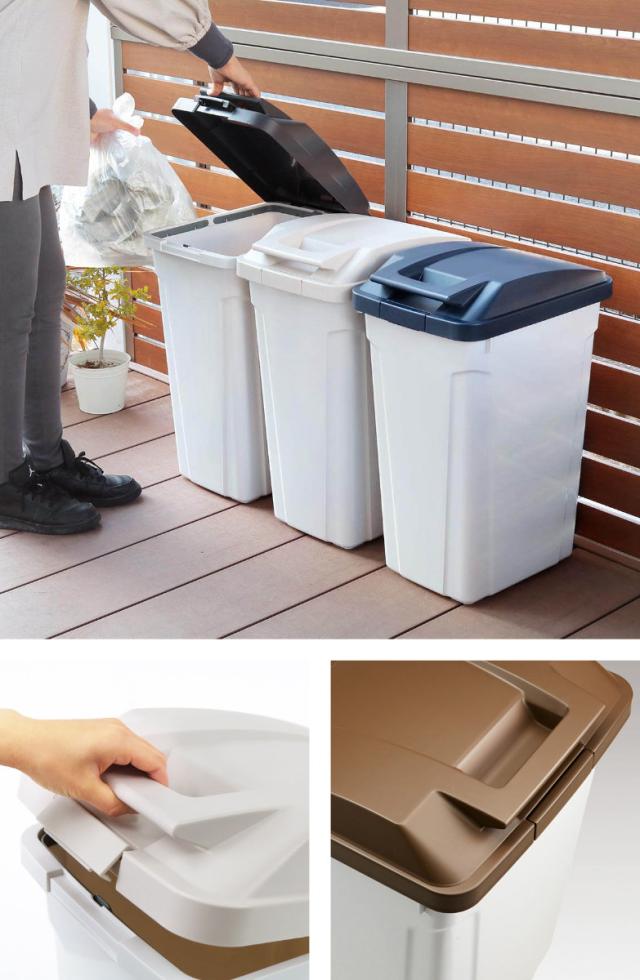 シンプルなデザインとクールなカラーリングなので、屋外はもちろん、室内でもインテリアを損なわずお使いいただけます。また、一般のご家庭で使いやすい大容量の45Lなので資源ごみの収集日までの分別用ストッカーとしても使いやすいサイズです。