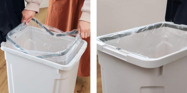 袋止め付きでゴミ袋を固定することができます。袋がずれにくく、外から袋が見えないのでスタイリッシュな見た目を保つことができます。
