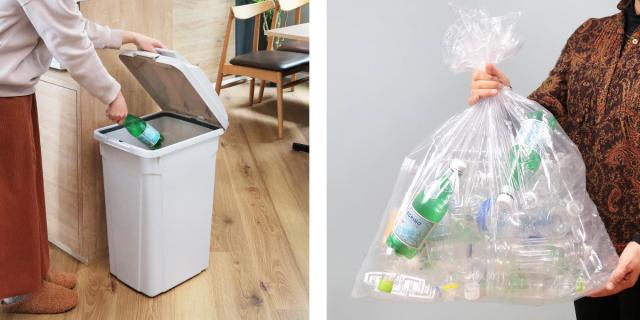 65cm×80cmサイズのゴミ袋を使用した際、500mlのペットボトルが33本程度入ります。※ゴミの入り方によって捨てられるゴミの容量は異なります。