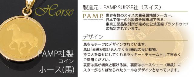 コインペンダント ネックレス 24金 K24 純金 1/25oz 馬モチーフ 馬蹄 ホース 蹄鉄 (ホースシュー) 時計枠 PAMP社製 K18チェーン付 【誕生日 お祝い プレゼント 贈り物 ギフト】【dgpcp】