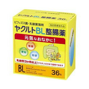 ヤクルトBL整腸薬 36包 『ヤクルトBL整腸薬 36包 』◆ビフィズス菌とカゼイ菌(乳酸菌)が成人一日あたり服用量の3包中に合せて約210億コ含有しています。◆消化液に強い2種類の菌が、生きたまま腸内に届きます。◆3か月以上の乳幼児から服用しやすい少し甘みのある散剤です。◆携帯に便利なスティック分包です。区分:医薬部外品【ヤクルトBL整腸薬 36包 詳細】原材料など商品名ヤクルトBL整腸薬 36包 成分(1包(1g)中)ビフィズス菌・・・50mgカゼイ菌・・・50mg添加物として乳糖水和物、ヒドロキシプロピルセルロース、トウモロコシデンプン、ブドウ糖、結晶セルロースを含有します。内容量36包販売者ヤクルト本社効能 効果整腸(便通を整える)、腹部膨満感、軟便、便秘用法 用量・次の1回量を1日3回、食後に服用してください。成人(15歳以上)・・・1包5歳以上15歳未満・・・1/2包3か月以上5歳未満・・・1/3包3か月未満は服用しないでください。ご使用上の注意★用法・用量に関連する注意・定められた用法・用量を厳守してください。・小児に服用させる場合には、保護者の指導監督のもとに服用させてください。★使用上の注意(相談すること)次の人は服用前に医師又は薬剤師に相談してください。....