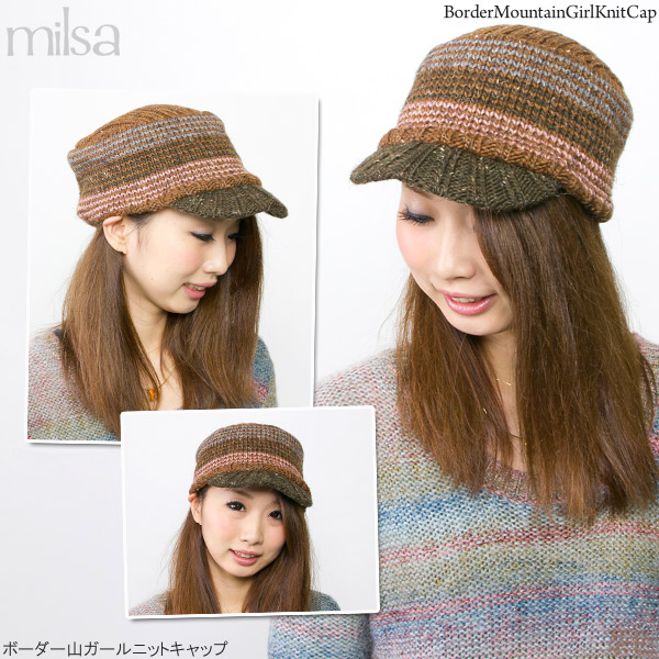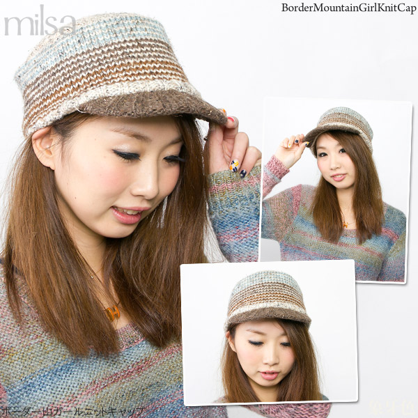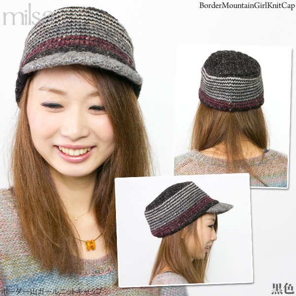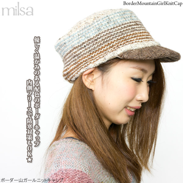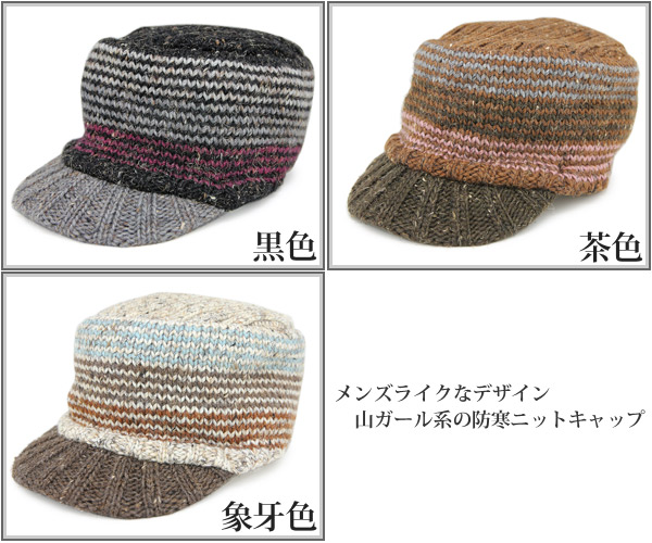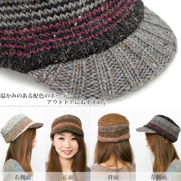 レディース CAP 帽子 秋冬 キャップ 防寒 アウトドア ウール フリース ボーダー / ボーダー山ガールニットキャップ