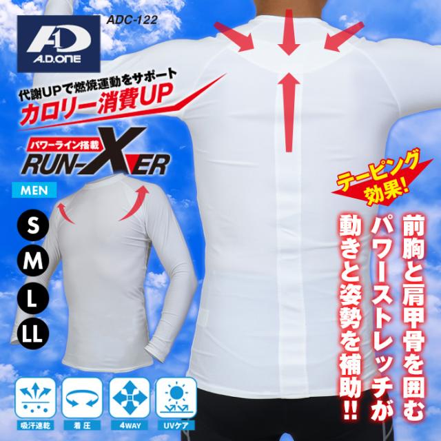 A.D.ONE POWER LINE COMPRESSION INNER ADC-122 / エーディーワン RUN-XER メンズ 長袖 パワーライン コンプレッション インナー クルーネックタイプ