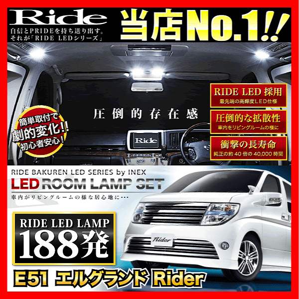 エルグランドライダー RIDE LEDルームランプ 188発 11点 E51 [H14.5-H22.7]
