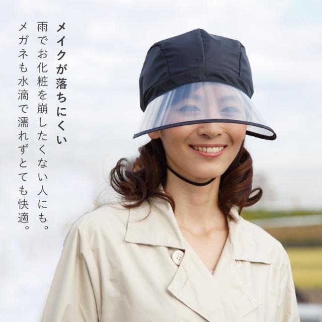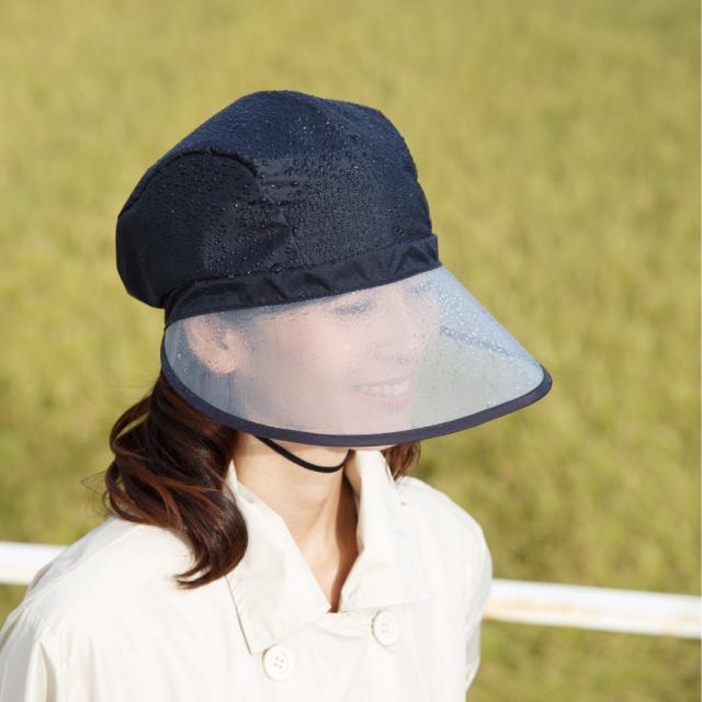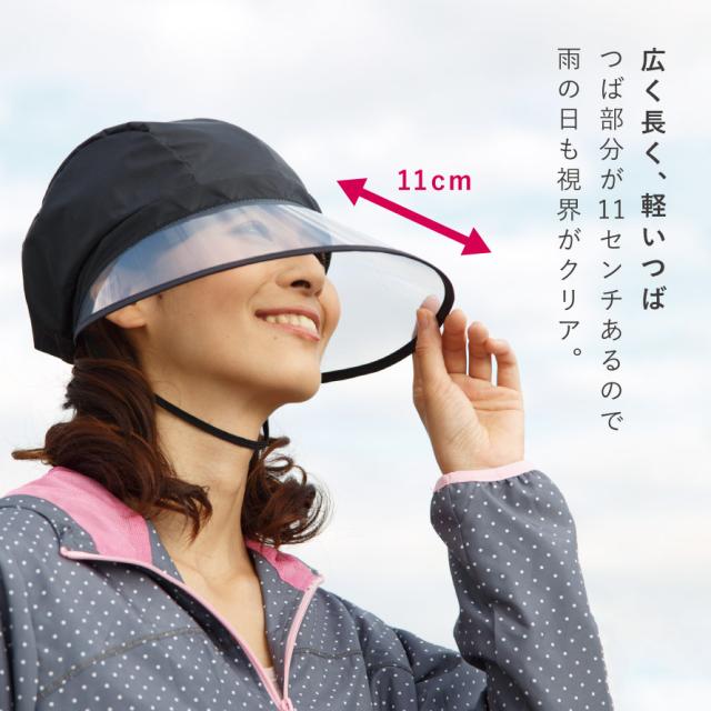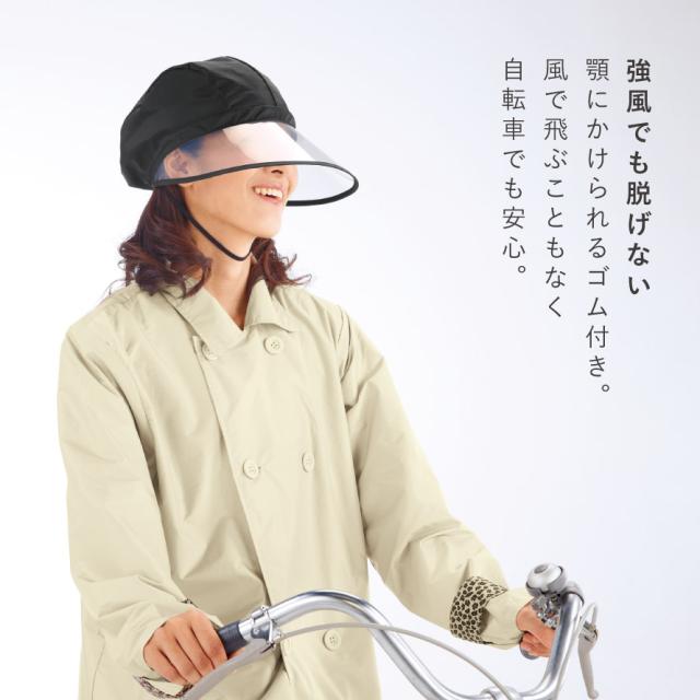 レインバイザー 自転車 顔が濡れない レインハット レディース おしゃれ 自転車グッズ 通園 通学 入園 フェイスガード つば広 合羽 ブラック 大人用 帽子 黒 ブラック 雨の日グッズ レイングッズ 撥水 レインキャップ 日本製 雨具 雨用帽子 あご紐付き