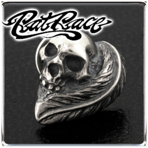 【RAT RACE(ラットレース)】フェザーハートウィズスカル シルバー ピアス (1P/片耳用)