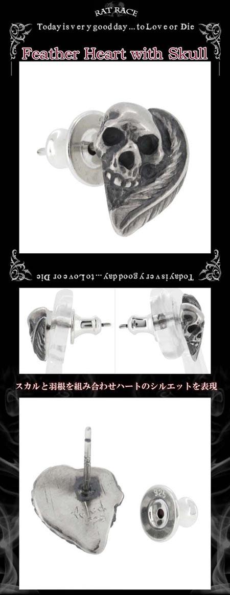 【RAT RACE(ラットレース)】フェザーハートウィズスカルシルバーピアス(1P 片耳用)シルバー925 silver メンズ 男性用 ピアス 片耳 ブランド