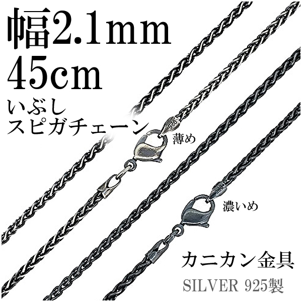いぶしスピガシルバーチェーン(45cm)/シルバー925 ネックレス チェーンのみ メンズ 燻し ブラック
