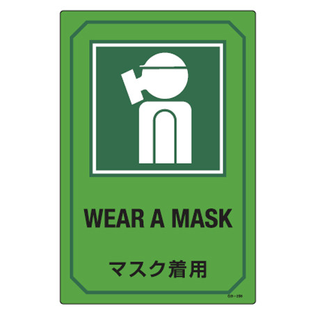 サイン標識 英文字入り 「 マスク着用 WEAR A MASK 」 ( 標示プレート 看板 英語 英字 英語表記 標識 プレート プレート標識 表示 標示 マスク 着用 イラスト入り 安全用品 )