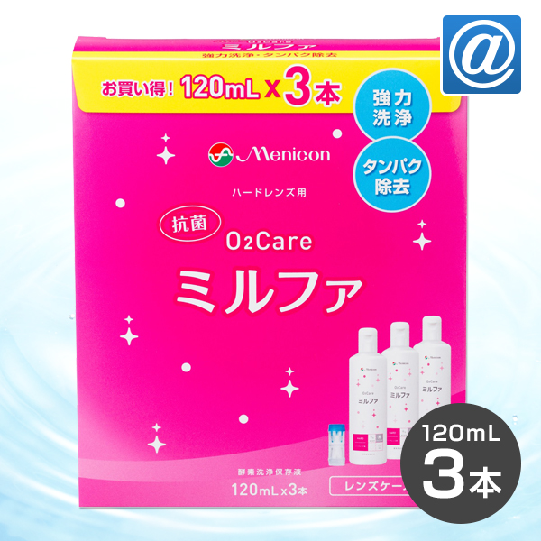 メニコン 抗菌O2ケア ミルファ 3本パック(120ml×3) ハードコンタクトレンズ/ケア洗浄・保存・タンパク除去/メニコン