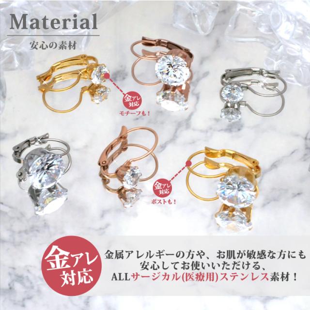 繊細かつ上品に輝く大粒ジュエルが顔周りを華やかに彩る煌びやかなステンレスピアスです。大切なピアスを落とさないようワンタッチで装着できるひっかけタイプ。普段使いはもちろんフォーマルな場面にも使えるキチンと感が出た上品デザインですよ♪素材には、金属アレルギーの方にも安心なサージカルステンレスを使用。使い勝手の良さとデザインが魅力的なステンレスピアスを是非お試しください。シルバーやホワイトゴールド、プラチナで金属アレルギーが出てしまう方にもオススメです。