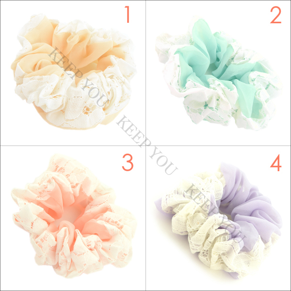 【メール便対応】シュシュ パステルカラー 全5色 レース縁取り【おしゃれ 可愛いレディース ヘアアクセ ヘアゴム】chouchou-023 ┃