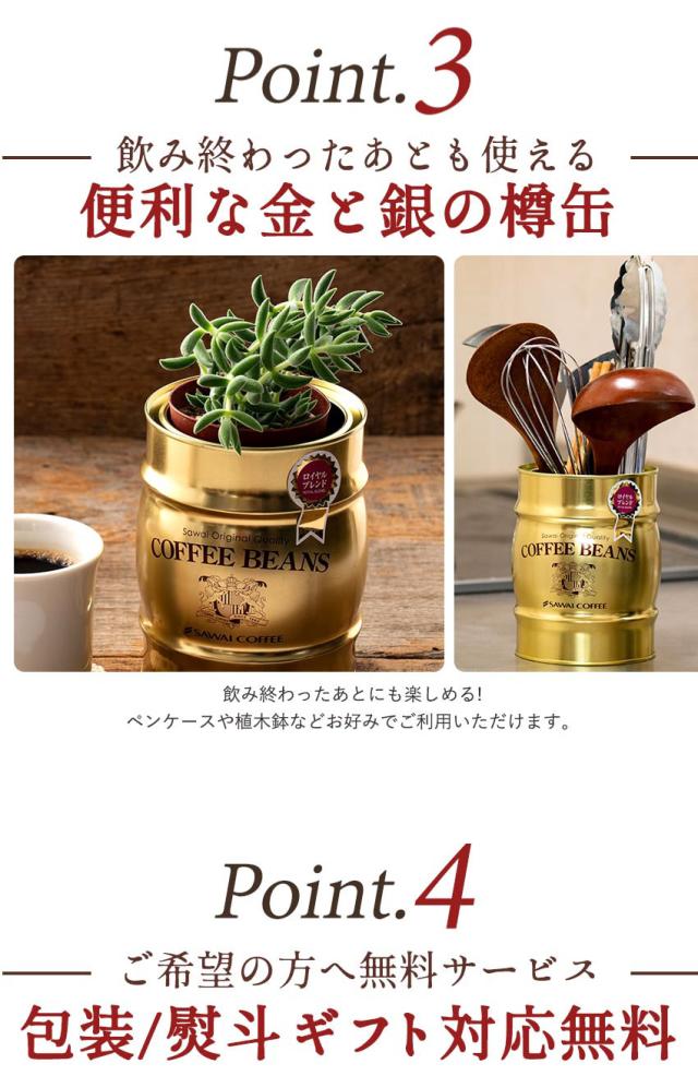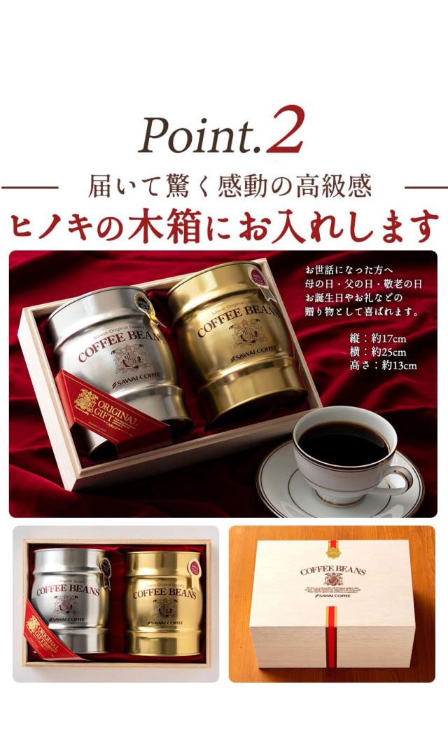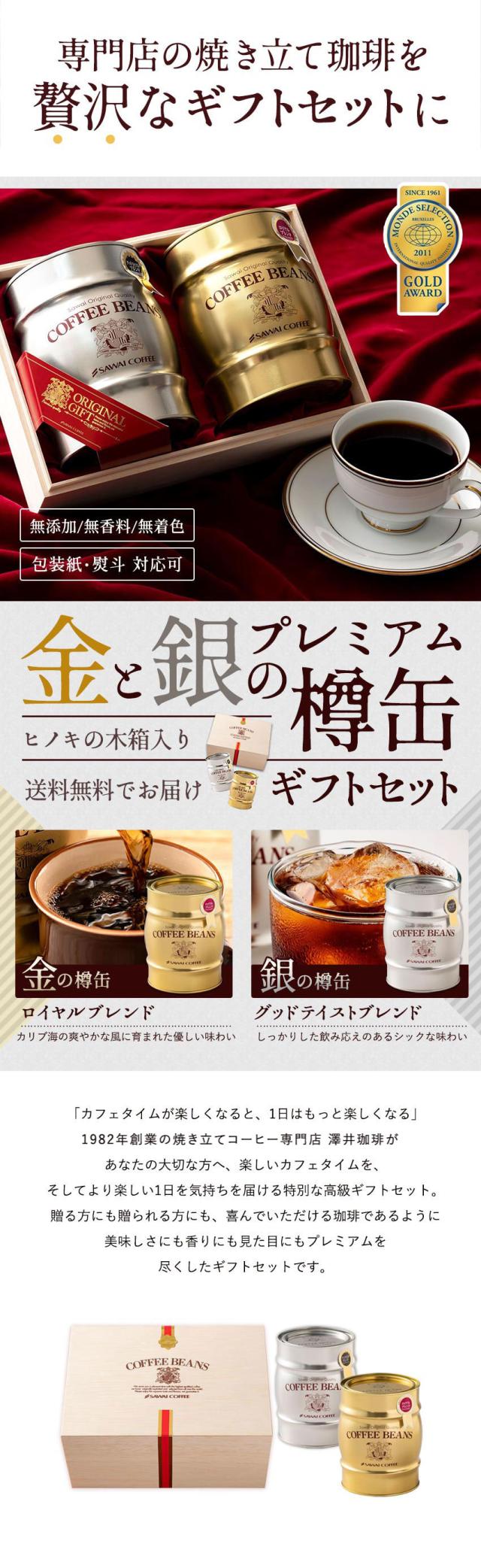 | 商品名 | 銀樽缶珈琲ギフト 澤井珈琲 木箱入りプレミアムセット |