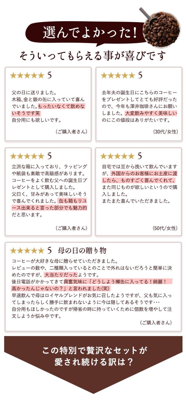 - 会社へ入学内祝いに購入しました。 高級感もあり、おいしかったので普段の飲むようにも澤井珈琲さんのコーヒーを購入させていただきました。
