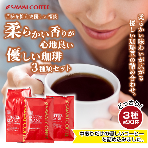 | 商品名 | 柔らかい香りと優しい味わいを楽しむ珈琲豆3種セット 900g |