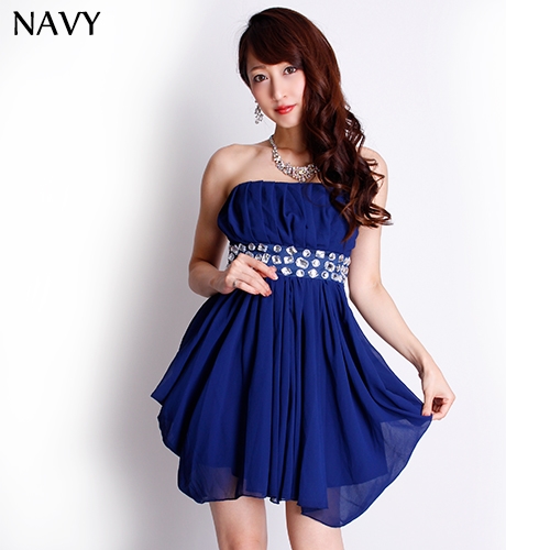 送料無料「沖縄、離島の方は除外です」シフォン素材&バスト下ラインストーンミディアムドレス[ キャバドレス・小悪魔アゲハageha・パーティードレス]