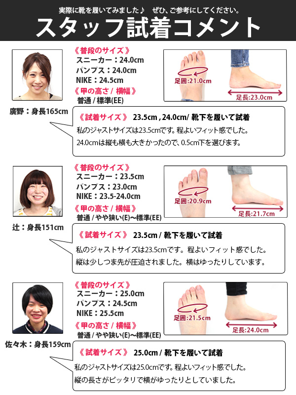 - まだ外で歩いていませんが、履き心地はすごく良いです。幅広、甲高なので、1つ上のサイズを購入しましたが、大正解。 普通のサイズだときつかったと思います。 素敵な商品で嬉しいです。 価格的にワンシーズ...